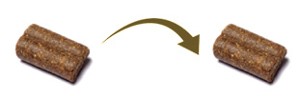 Met het overstappen van de ene geperste brok naar de andere kunt je dat doen door de oude en de nieuwe voeding te mengen. Meng gedurende negen dagen steeds meer nieuwe voeding door de oude tot je geheel bent overgestapt. In een enkel geval kan de ontlasting door de wisseling van voeding iets anders zijn dan normaal, dit is niet ernstig.
