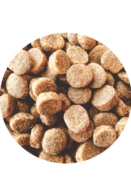 Ingrediënten: mais, kalkoenvlees, rijst, bietenpulp, kippenvet, gehydrolyseerd gevogeltelever, lijnzaad, johannesbrood, vismeel, gist, eipoeder, mineralen en vitaminen, chondroitine, glucosamine, L-carnitine, lecithine, inuline (FOS), taurine.
