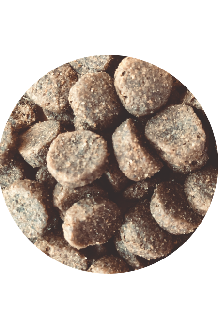 Ingrediënten: kippenvlees, mais, rijst, kippenvet, vismeel, bietenpulp, johannesbrood, lijnzaad, gehydrolyseerd gevogeltelever, zalm olie, weipoeder, gist, mineralen en vitaminen, chondroitine, glucosamine, L-carnitine, lecithine, inuline (FOS), taurine.